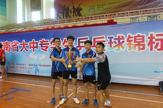 2017年4月18-21日,由海南省教育厅、海南文化广电出版社体育厅举办的2017年海南省大中专学生乒乓球锦标赛在海南大学隆重举行。本次比赛由通识教育学院直属党支部书记、学生处副处长钟清云担任领队,体育教研室杜鹏君老师,学生处林尤鎗老师担任教练带队参加。