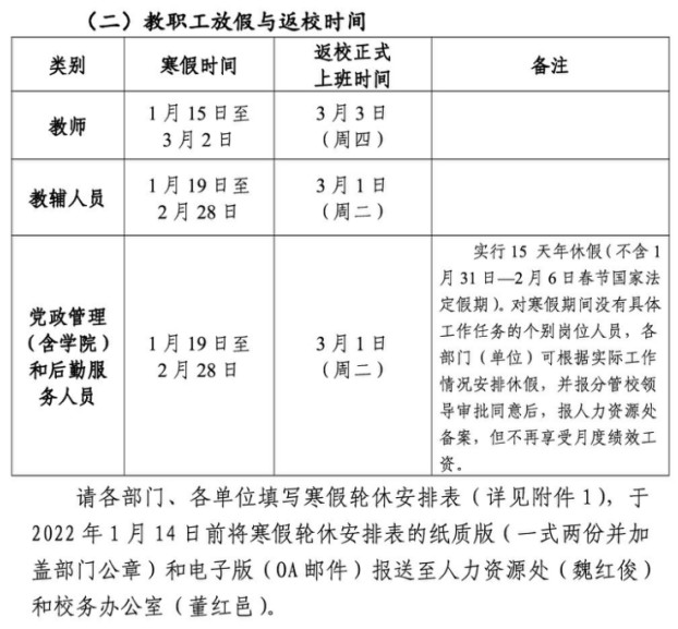 2022年寒假和春节放假的通知