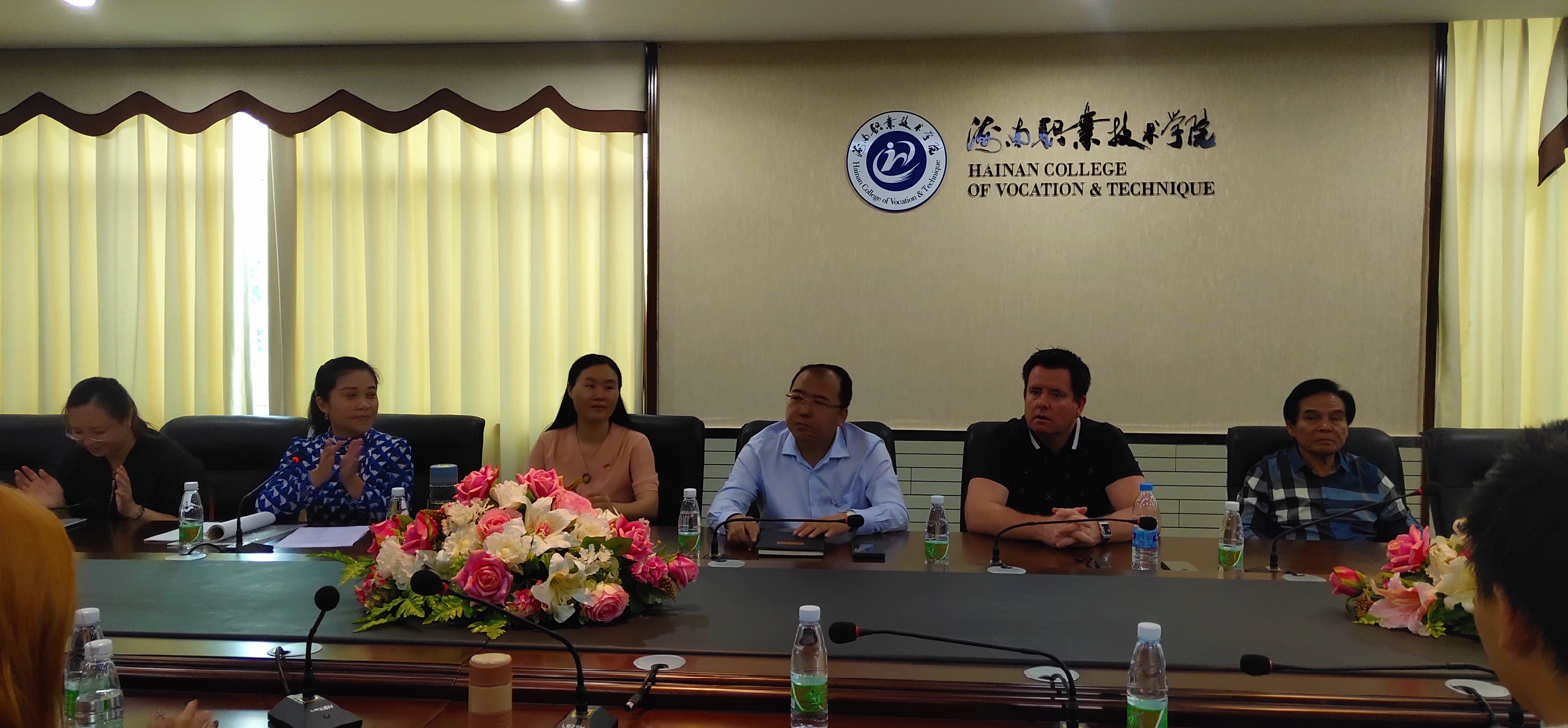 首先,吴肖淮助理致欢迎词,感谢加拿大外教Greg长期以来对我校教学工作的支持和辛勤付出,Greg先后15次来我校教授高尔夫球和营销专业课程,他丰富的教学经验,幽默的教学方式深受广大教师和学生的好评。希望我校教师借此交流机会增强两国间文化和教学交流,做一位具有国际视野的老师,培养出放眼世界的学生。