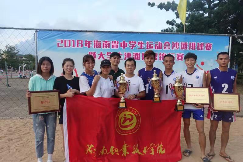10月14日,2018年海南省大学生沙滩排球锦标赛在琼海海桂学校落下帷幕。我校代表队获大学普通男子组冠亚军、大学普通女子组冠军,我校获“体育道德风尚奖”、“优秀组织奖”,取得了竞赛成绩和精神文明的双丰收。 本次参赛由通识教育学院党支部书记钟清云担任领队,王德深、吴林炎老师担任沙滩排球队教练。