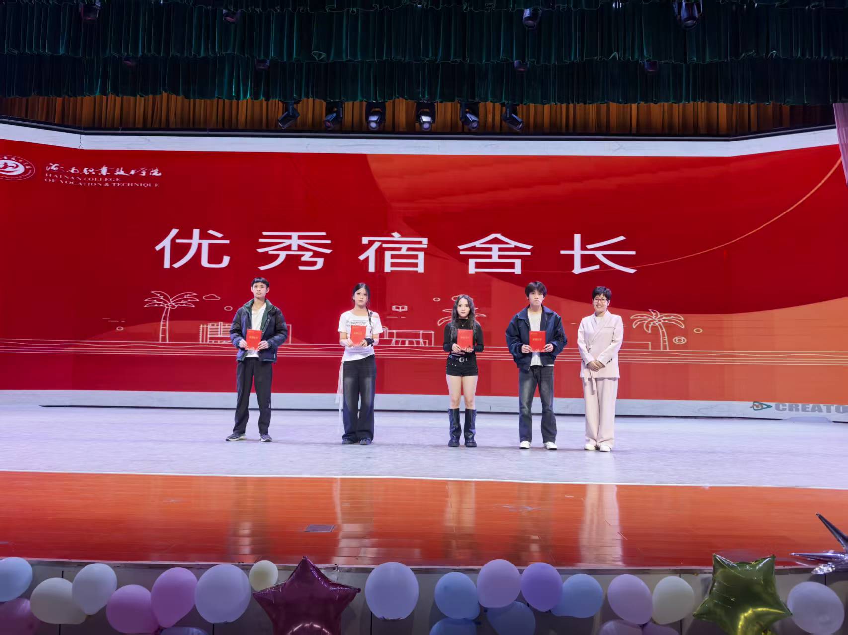 表彰会上,学院对本学期优秀宿舍长、优秀宿舍以及晚上获奖节目进行了一一表彰。
