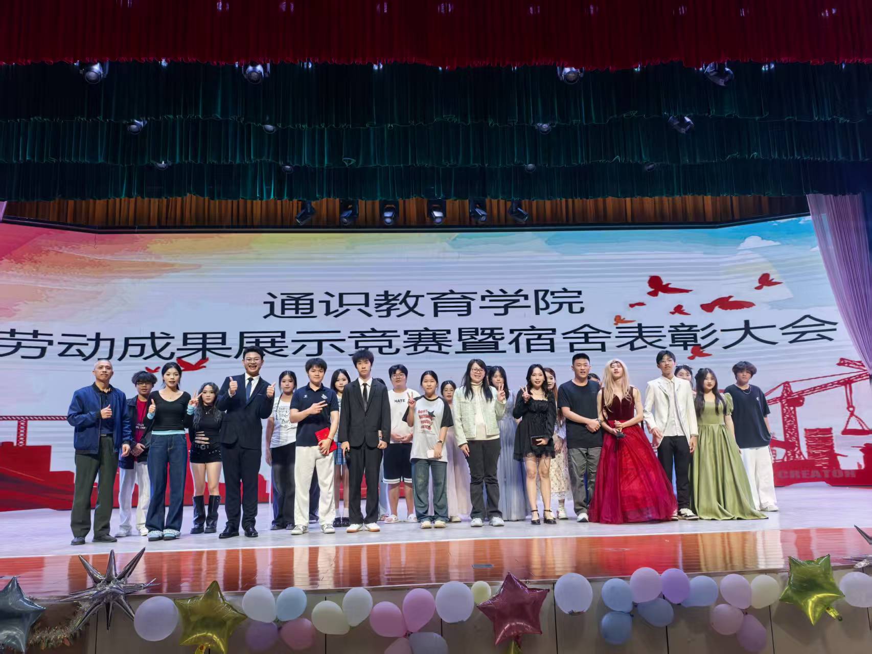 2025年12月17日晚,通识教育学院劳动成果展示既宿舍表彰大会在学校大礼堂隆重举行。校团委书记方亿群出席,通识教育学院党总支书记、院长钟清云出席并讲话。